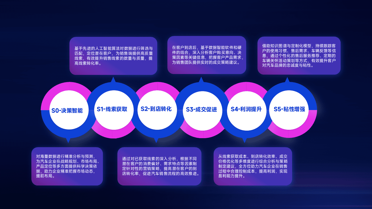通过拓宽潜在客户来源、、、优化线索分配并提高到店转化率,,,,以增强销售效率。。同时,,,利用线索数据不断优化分析模型,,有效提升转化率,,,扩大营销影响力。。。。